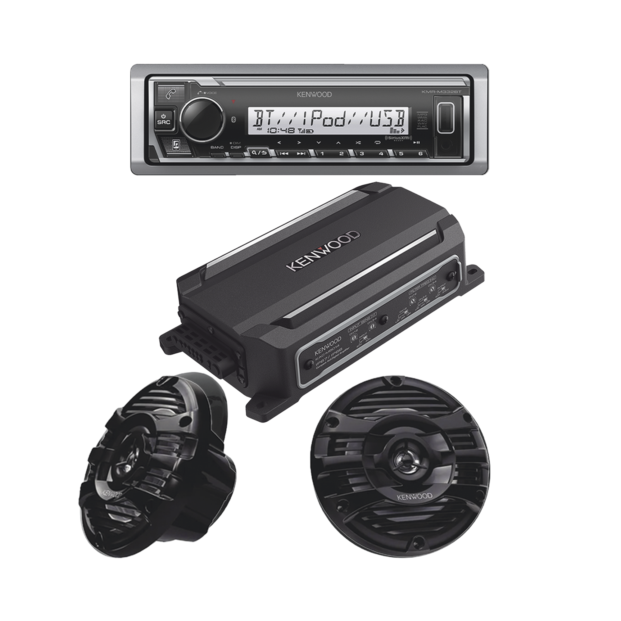 Kit de estéreo con Bluetooth KMR-M332BT | Amplificador KAC-M5014 | más Par de bocinas KFC-1653MRB