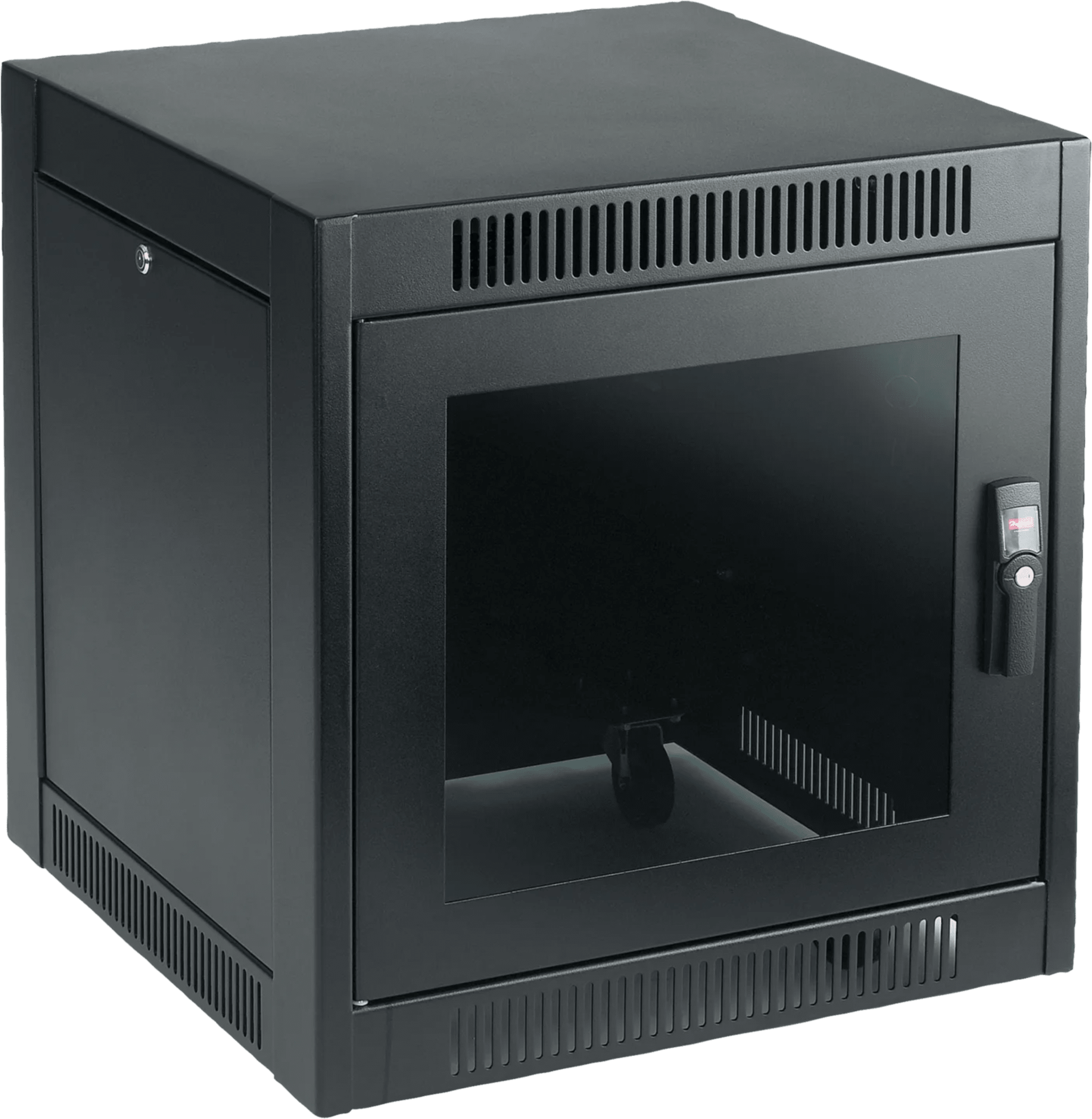 Gabinete SOHO para Oficinas Pequeñas y Home Office, 700 x 600 x 900 mm, Acero Negro, 11U, Ruedas, Sistema de Enfriamiento Pasivo, Puertas con Cerradura, Paneles Laterales ExtraíblesGabinete SOHO para Oficinas Pequeñas y Home Office, 700 x 600 x 900 mm, Acero Negro, 11U, Ruedas, Sistema de Enfriamiento Pasivo, Puertas con Cerradura, Paneles Laterales Extraíbles